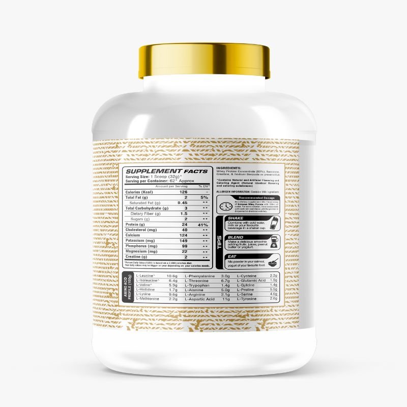Each serving of 100% Whey contains 24g of protein, providing the body with the necessary building blocks to promote muscle recovery and development. Also, each scoop contains 8g of BCAAs, which help reduce muscle breakdown and support muscle protein synthesis. With a convenient scoop size of 32g, 100% Premium Whey is easy to mix into shakes, smoothies, or even baked goods. Whether you’re a competitive athlete or just looking to support your fitness goals, Whey is the perfect addition to your diet.